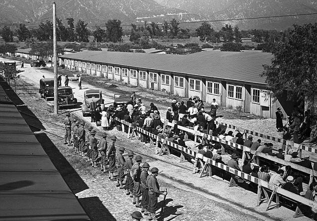 "Those held at the camp lived in hastily constructed barracks or in converted horse stalls, which some evacuees said never fully lost the stench of manure." (Associated Press)